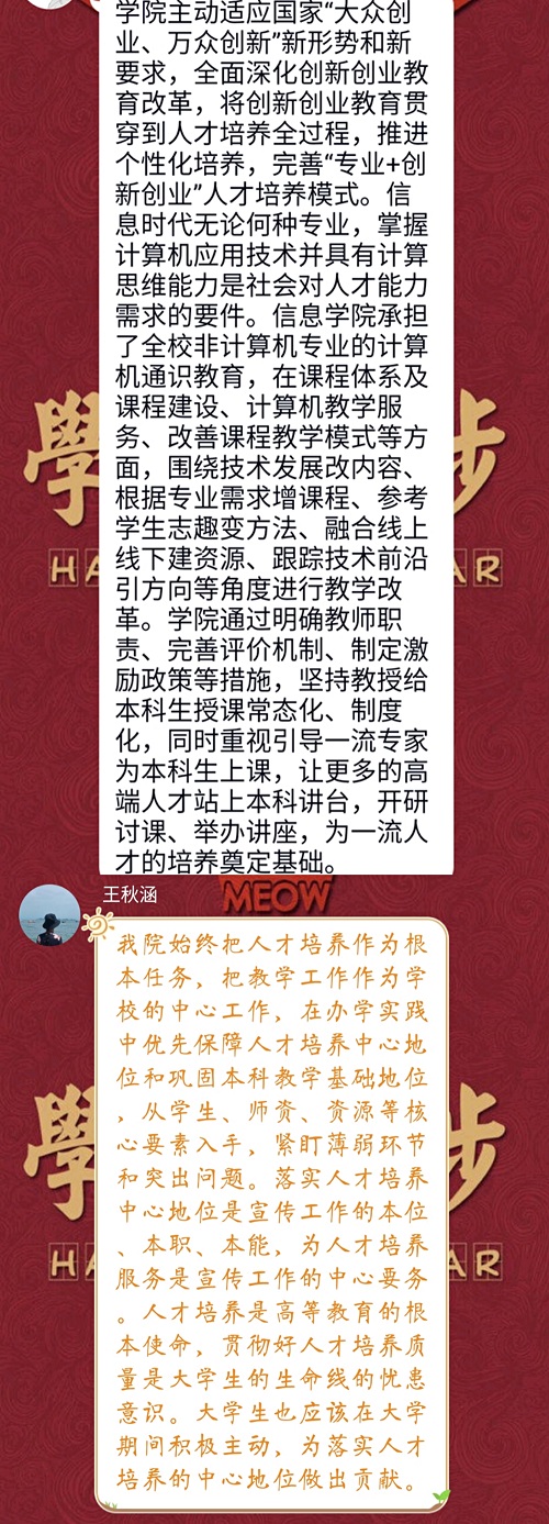 的人才培养工作进行了回顾、给予了评价,也对下一步的“落实人才培养中心地位”工作提出了建议,并讨论了学生党员及辅导员实际行动层面的问题。希望同学们的意见与建议能够帮助五楼自拍