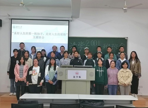 考察时的重要讲话精神,大力弘扬与传承“传道济民、经世致用”的书院文化精髓,法学2001班在团支书赵瑞的组织下于2020年10月17日开展了“系好人生第一粒扣子,走好人生道路”主题团日活动。