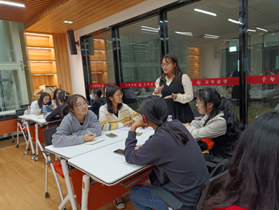 “逆溯时光,寻梦年少”环节,同学们共同观看青春主题教育短片《青春不迷茫》。章黎婧、黄海芳两位同学向大家分享了观看短片的感想及对“儿时的梦想”的解答,引发了同学们的共鸣。“筑梦时代,大有可为”环节中,在习近平总书记在二十大开幕式上对青年寄语的指引下,同学们就家乡的法治建设成就与特色进行分析和分享,讨论作为一名法学专业学生,应如何将个人专业发展融入家乡法治建设之中,以点滴积累创造卓越成就。