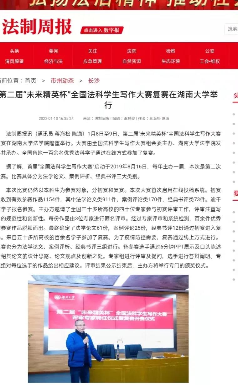 法制周报讯(通讯员 蒋海松 陈潇)1月8日至9日,第二届“未来精英杯”全国法科学生写作大赛复赛在五楼自拍