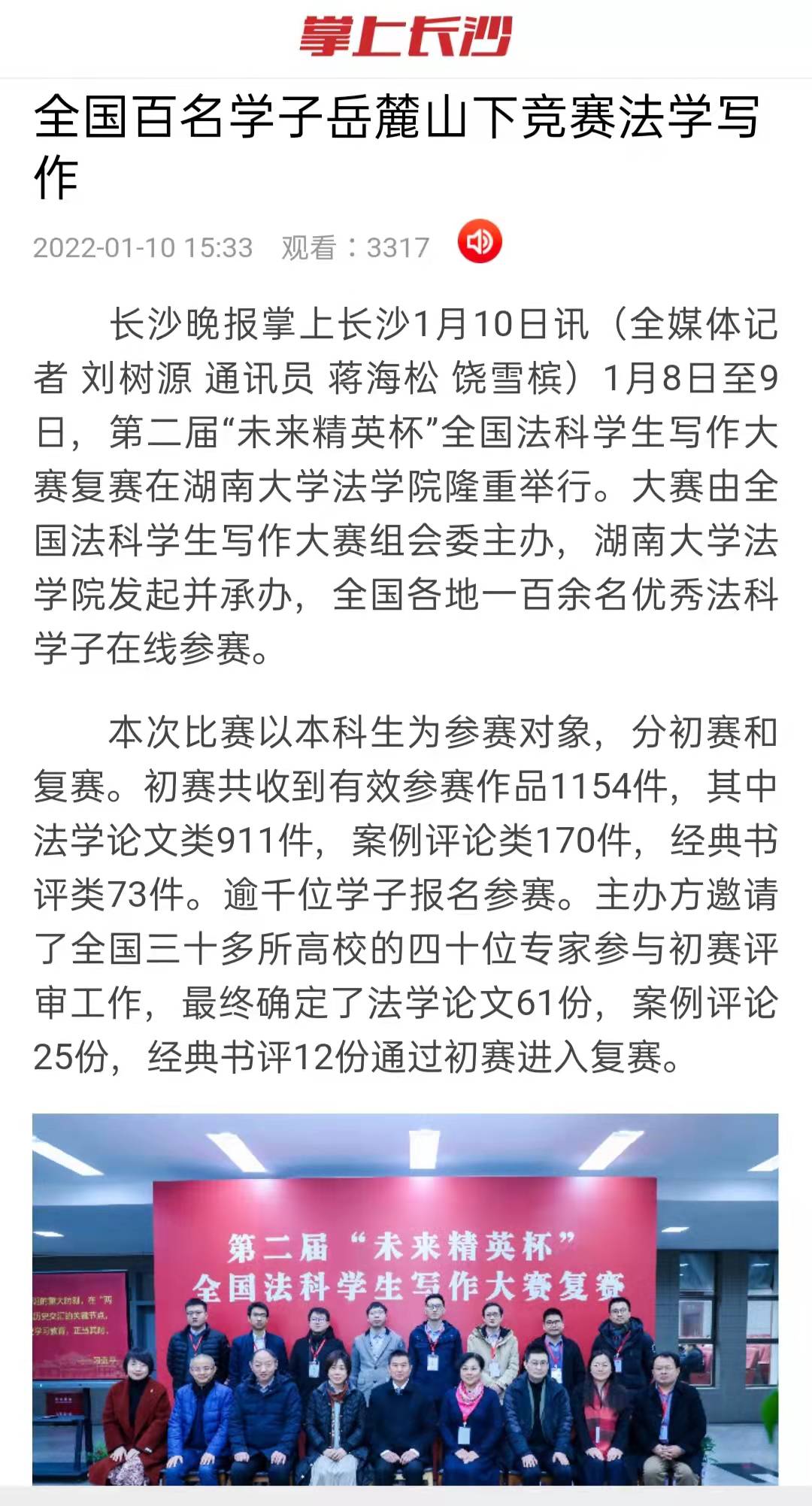 长沙晚报掌上长沙1月10日讯(全媒体记者 刘树源 通讯员 蒋海松 饶雪槟)1月8日至9日,第二届“未来精英杯”全国法科学生写作大赛复赛在五楼自拍