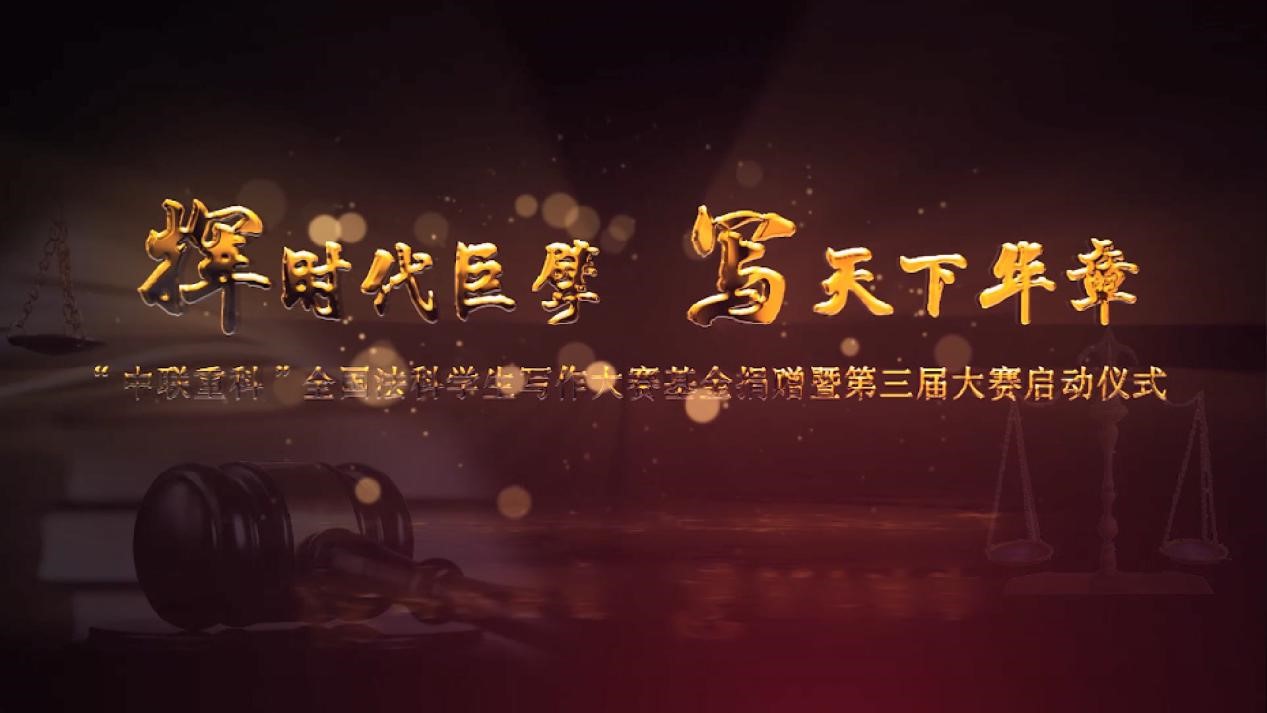 随后,播放了本次法科学生写作大赛宣传视频《挥时代巨臂 写天下华章》,重温了本届大赛的组织过程,总结了本届大赛的新特征,也介绍了中联重科文化建设及冠名大赛的缘由。