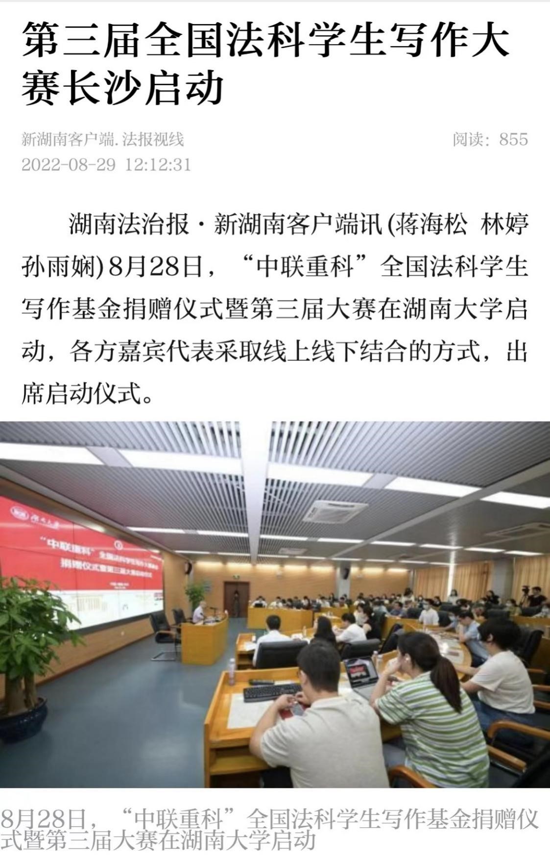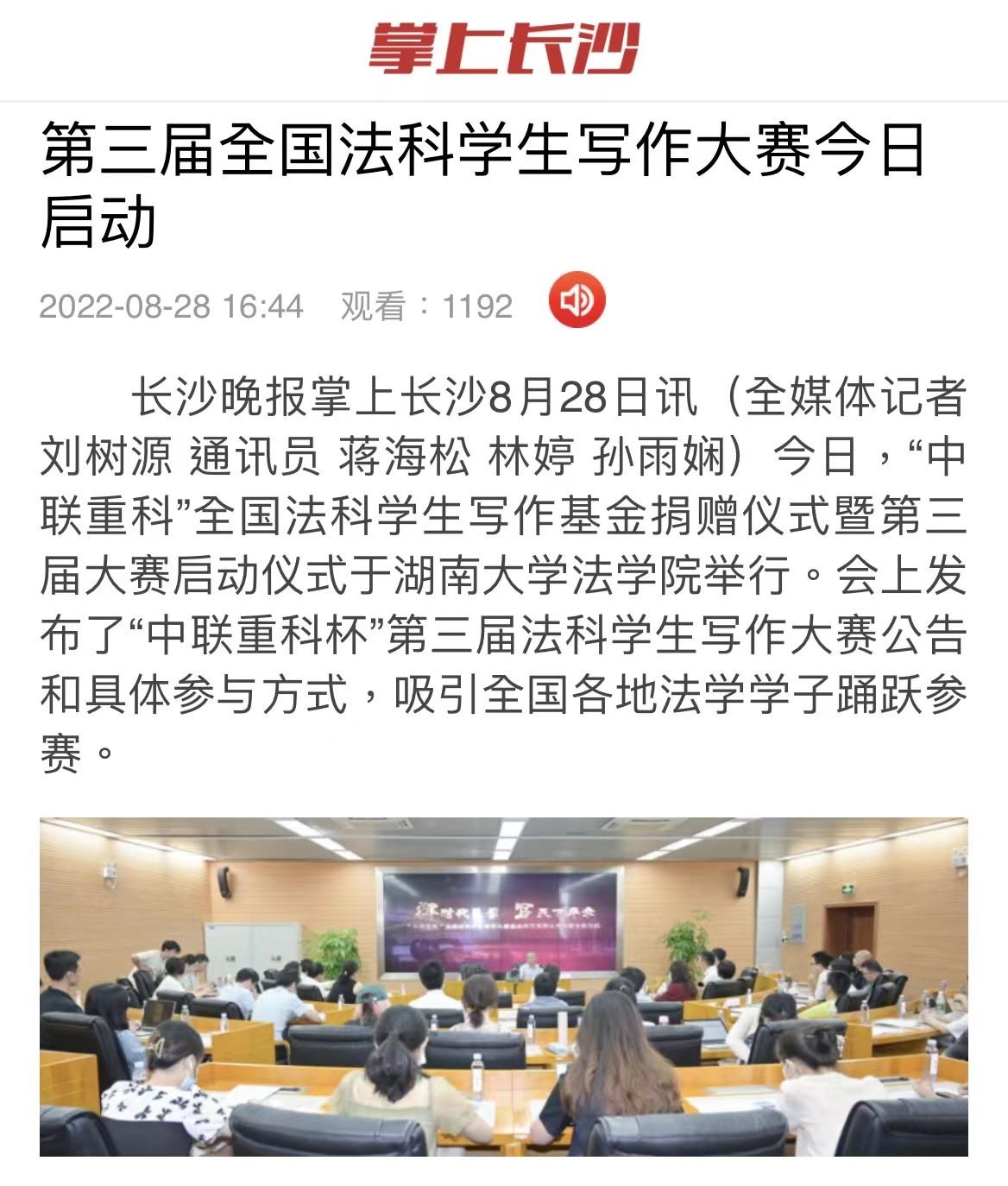 第三届写作大赛的成功启动引发全国媒体密集报道。据不完全统计,已有中国新闻网、《光明日报》、《中国科学报》、《三湘都市报》、《潇湘晨报》、《法治周末》、《湖南法治报》、新浪网、搜狐网、腾讯网、中国科学网、新湖南客户端、红网、华声在线、掌上长沙等全国十多家媒体的报道。活动的详细报道也获得光石法学苑、法学学术前沿、教授加、法科生之家等知名法学公号的转推。