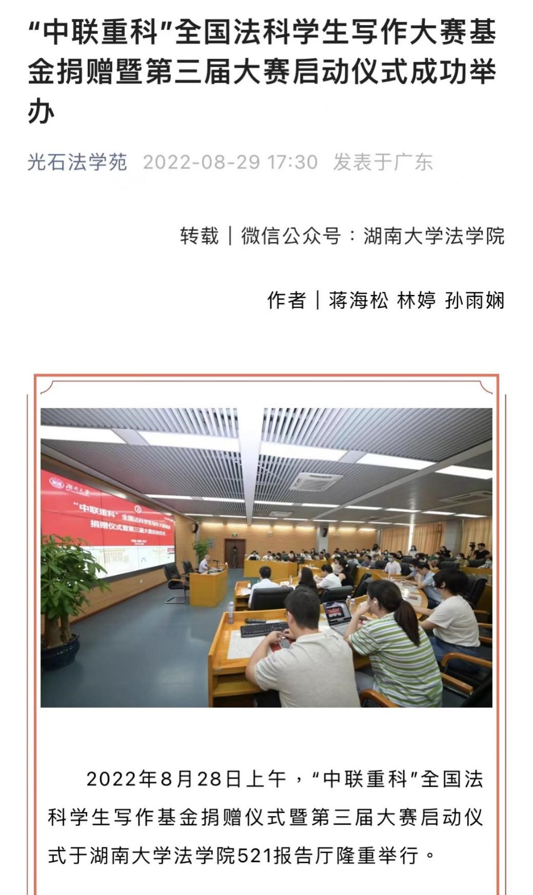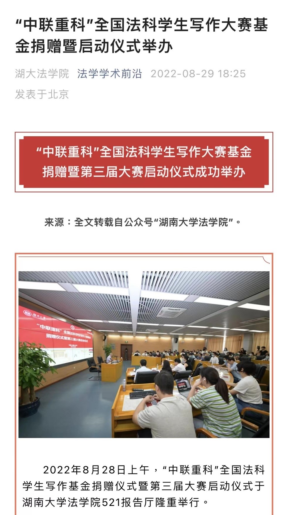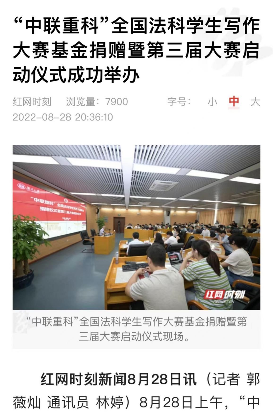 2022年8月28日上午,“中联重科”全国法科学生写作基金捐赠仪式暨第三届大赛启动仪式于五楼自拍
