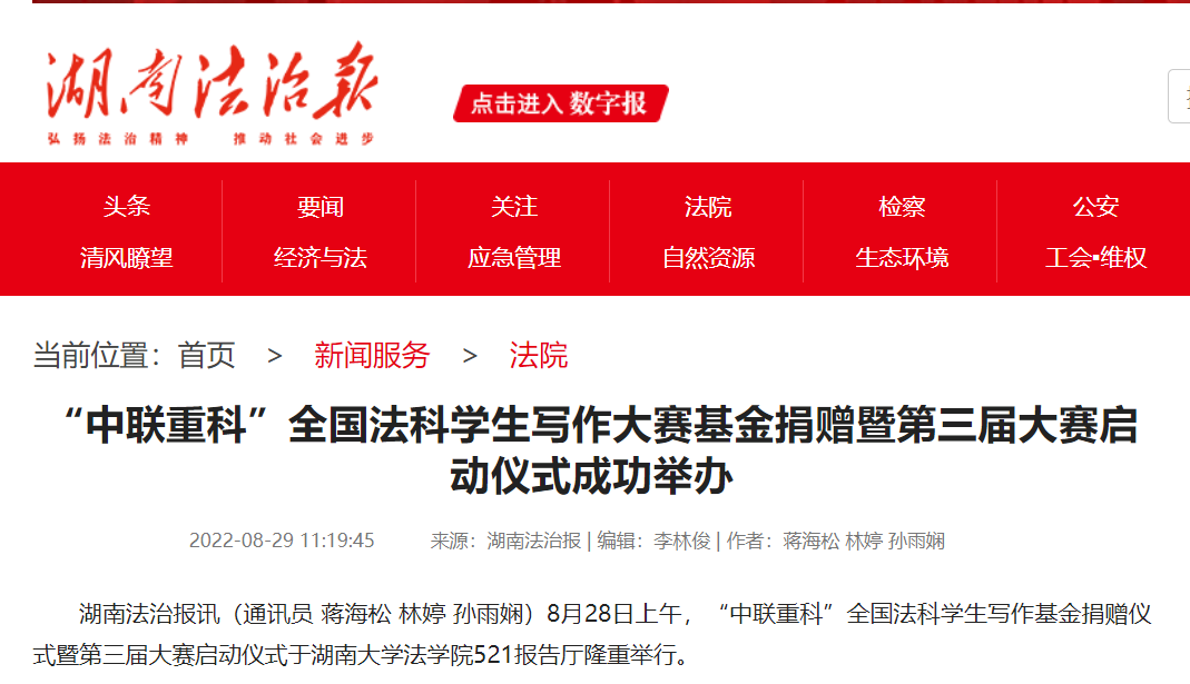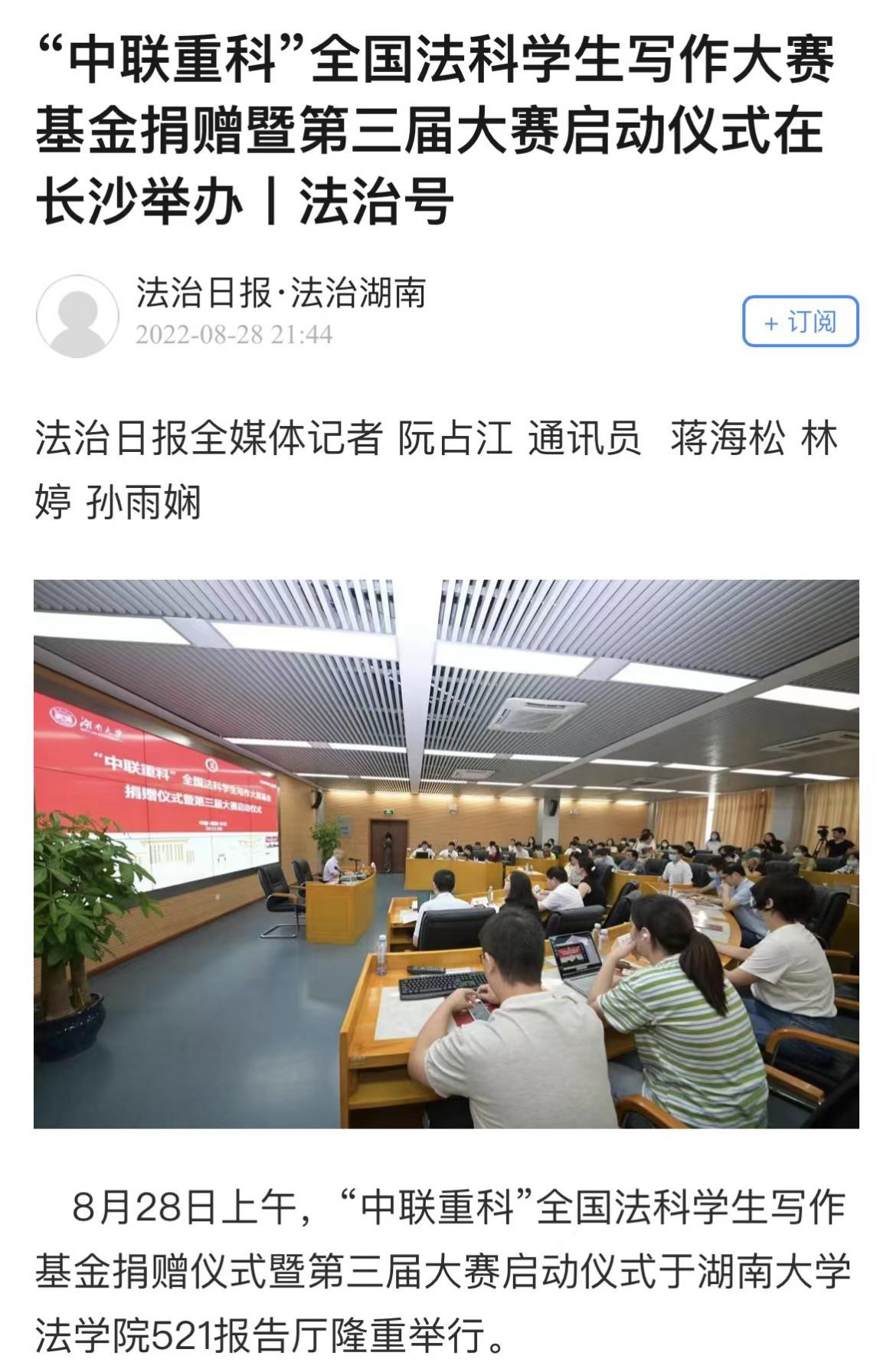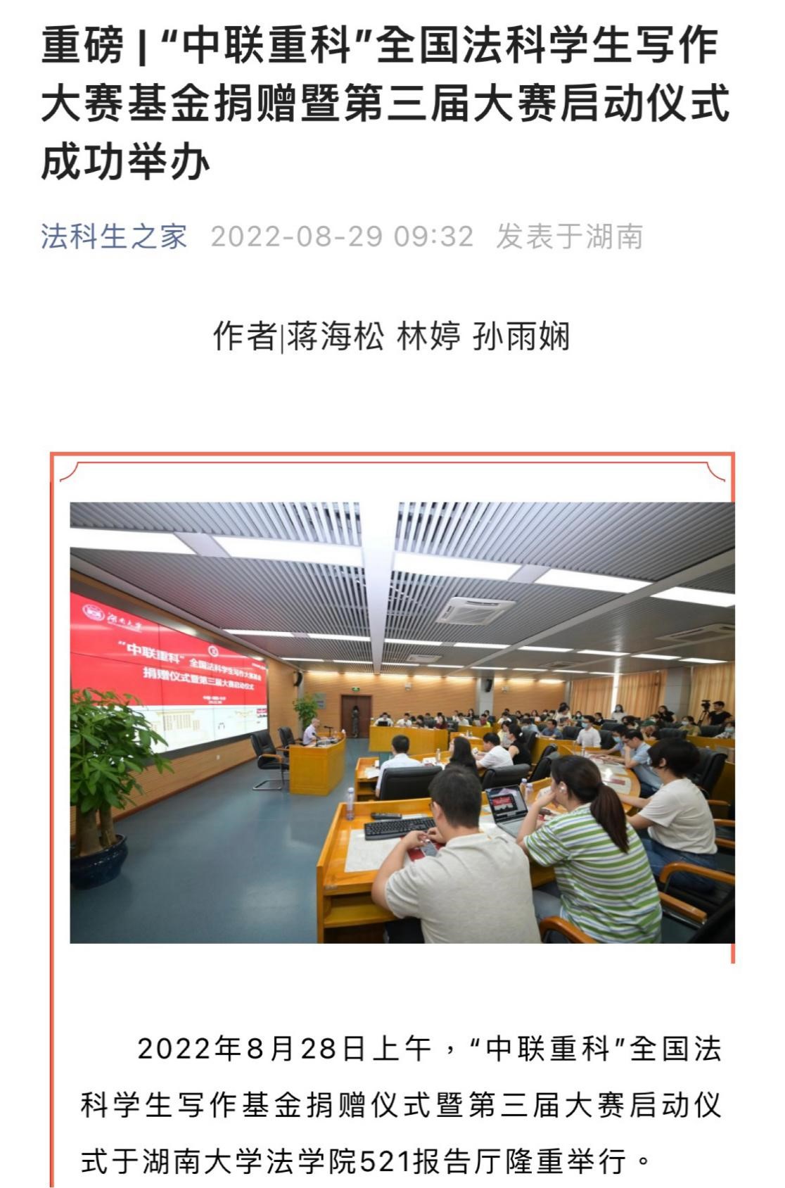 2022年8月28日上午,“中联重科”全国法科学生写作基金捐赠仪式暨第三届大赛启动仪式于五楼自拍