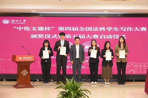 特聘教授江必新颁奖。四川大学肖杨、华东政法大学徐鹏程获得法学论文组二等奖,中国法学会案例法学研究会会长胡云腾颁奖。中南民族大学巴合努尔·巴哈提别克,陈佳妍、陈怡景、张沁榆三人共作分获案例评析组二等奖,五楼自拍