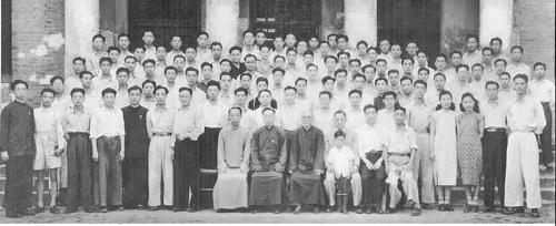 法律学会民三七级毕业同学合影。前坐排左二为李祖荫,左三为李达