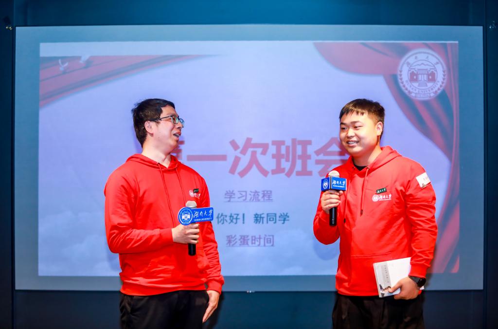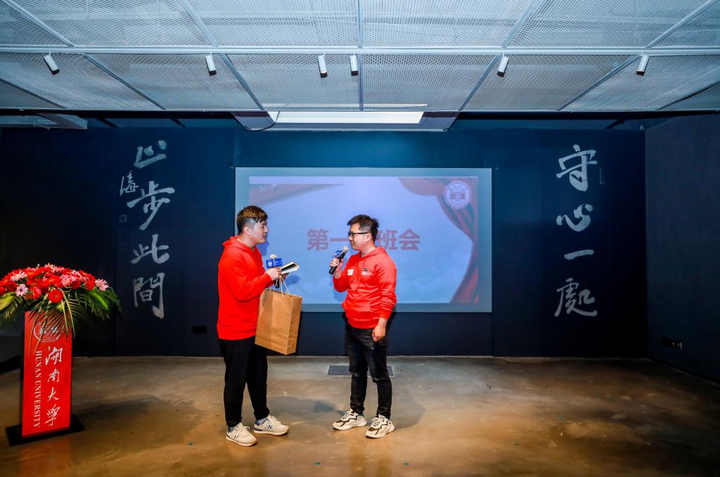 接下来,在班主任张老师的带领下开展了班级会议。班级会议主要分为三个部分,第一个部分张老师向大家详细梳理了学习流程。第二个部分是“你好新同学”,由介绍完毕的同学抽取出下一组新同学上台来进行一个简单的自我介绍和礼物交换活动。第三个部分是彩蛋环节,部分任课老师们虽不能至现场,但提前为同学们录制了欢迎视频并赠予亲笔寄语的笔记本,对同学今后的学习给予了非常殷切的期待和一些指导。