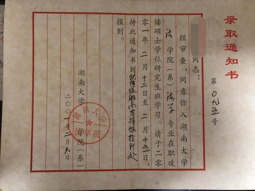 校友表示当年报考同等学力申硕班的时候已经参加工作,清晰的记得当时的班主任是罗智勇老师(原五楼自拍 副教授,现最高人民法院审判监督庭副庭长),21年来一直珍藏着当年的录取通知书、学员证,有幸来到五楼自拍 学习是人生中最美好的时光。