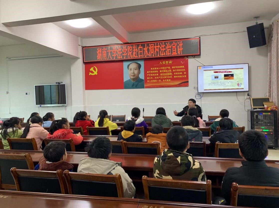 党委与隆回县白水洞村总支结对共建总体方案》,该方案分指导思想,基本原则,工作目标,活动项目、实施单位及参与对象,活动要求五个部分,系列活动包括法律学习宣传、普法进校园、提供法律咨询服务与法律援助、加强法治文化阵地建设四大板块十项活动,此行仅实施了部分活动,此后还将分阶段有序推进其他活动。