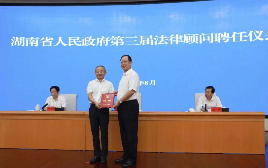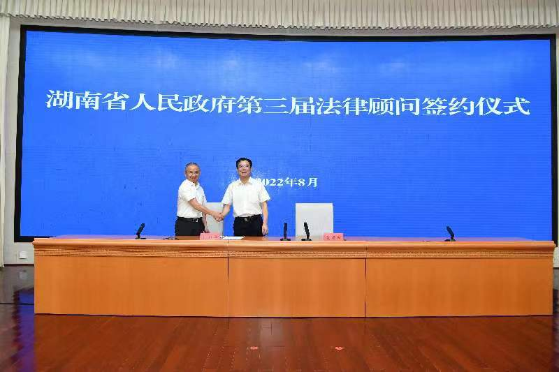 2022年8月16日下午,湖南省人民政府第三届法律顾问聘任仪式在长沙举行,10名法学专家、律师和3家律师事务所受聘为省政府法律顾问和顾问单位。五楼自拍