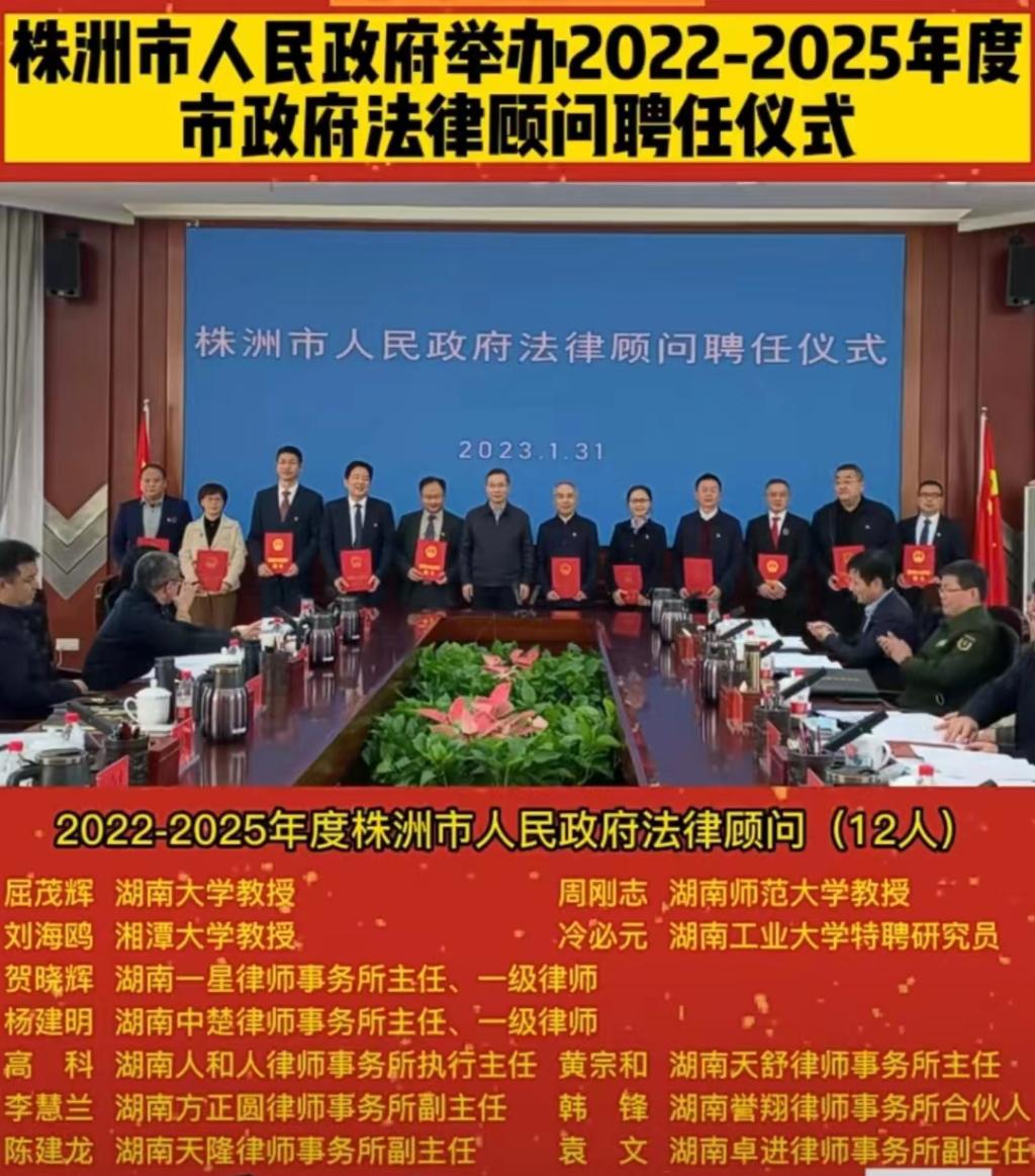 2023年1月31日下午,株洲市政府举行法律顾问聘任仪式,五楼自拍
