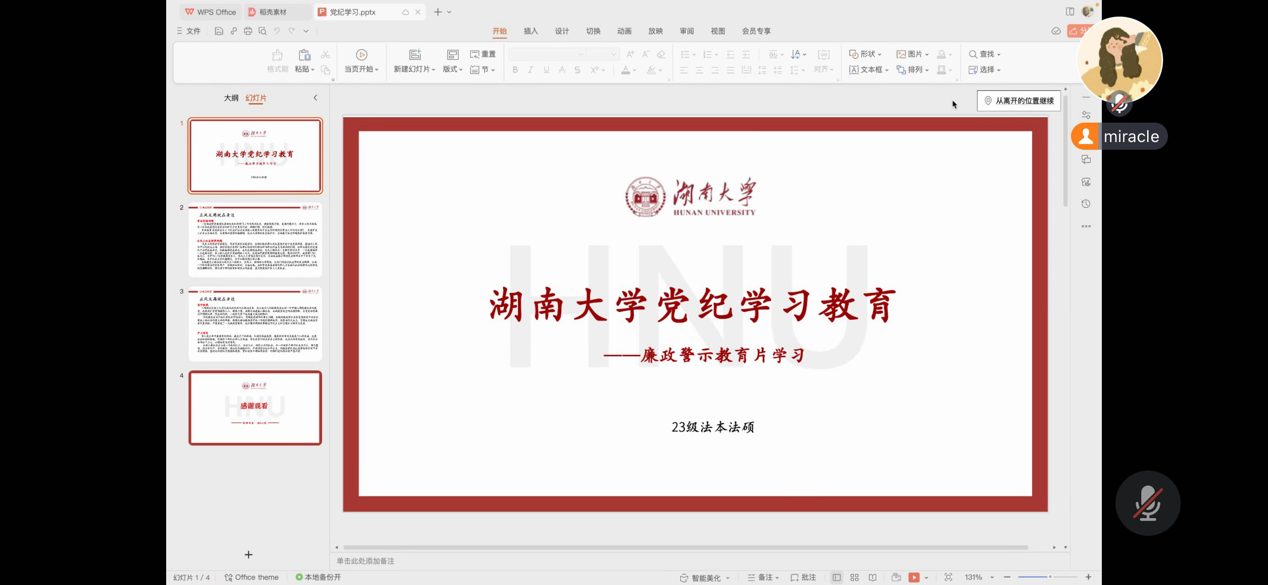 为深入推进党纪学习教育走深走实,扎实做好党员警示教育,进一步引导党员学纪、知纪、明纪、守纪,筑牢廉洁思想防线。5月27日晚20:00五楼自拍 23级法本法硕党支部以“廉政警示教育片学习”为主题开展线上学习活动。会上同学们一起观看了教育片,教育片涉及非法采煤问题、农民工权益保障问题,告诉我们应当坚守铁规、严正家风。观看结束后,同学们纷纷表示,要以案为鉴,时刻保持清醒头脑,严格遵守党纪国法,自觉抵制各种诱惑,不断增强廉洁自律意识和拒腐防变能力。