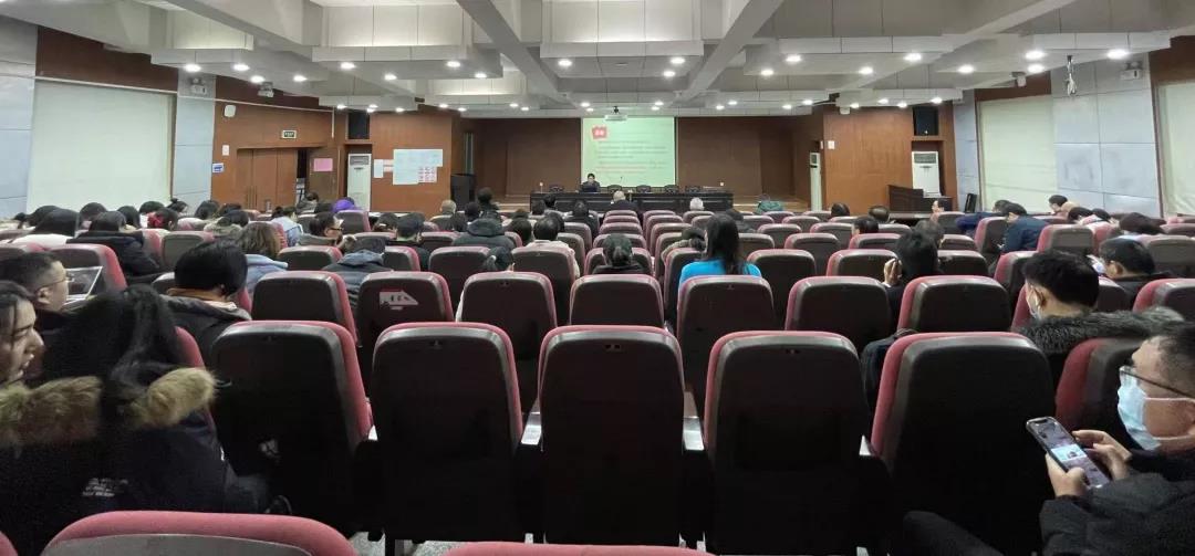 2021年12月28日下午,院党委书记易骆之在模拟法庭宣讲党的十九届六中全会精神,五楼自拍