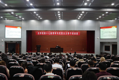 报告厅为第十七届青年马克思主义骨干培训班全体学员做以“当代大学生写作能力的培养与提高——以怎样写好消息为例”为题的讲座。
